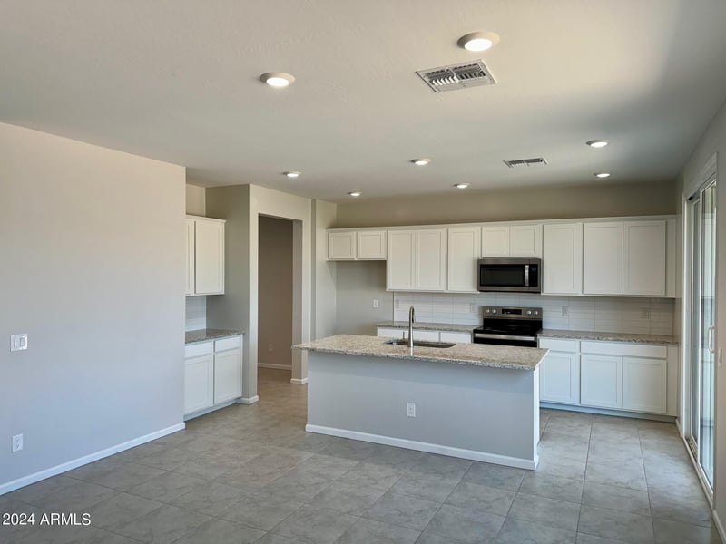 Listing details for 17919 Montana De Oro Dr, Surprise, AZ 85387 : A beautiful new build move-in ready two-story home. This home features 4 bedrooms and 3 baths, plus a loft, along with tile throughout the main area of the home, paired with white cabinets and granite countertops in kitchen and bathrooms. This home includes 9ft ceilings along with stainless steel appliances. The community includes a pool, parks, playgrounds, sport courts, dog park, walking trails.