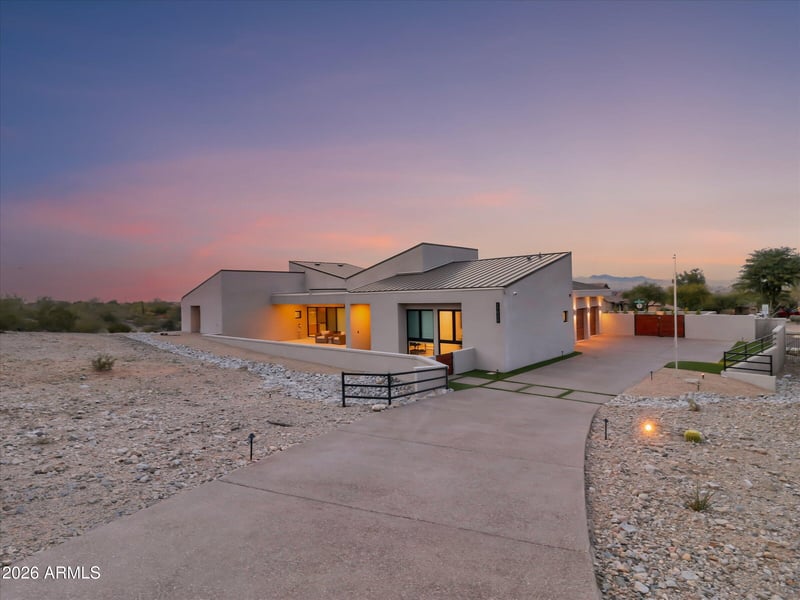 Listing details for 17934 Estes Way, Goodyear, AZ 85338 : Luxury modern living in Estrella! This custom home on a gated cul-de-sac lot features 3 beds + office/den, 3 baths, and an oversized 3-car garage (853 sq ft) with 10ft RV gate/parking. Stunning design with vaulted ceilings, open kitchen/dining/living, and four 16ft multi-sliders blending indoor/outdoor living. Chef's kitchen offers quartz counters, waterfall island, walk-in pantry, skylights, and 48'' Bertazzoni range. Owner's suite boasts spa bath with freestanding tub, rainfall shower & huge walk-in closet. Oasis-style backyard includes a custom pool w/water features, spa, pergola, fire pit, BBQ & turf. Steps to Estrella's lakes, trails, pools, gym, dining & moreāan AZ lifestyle at its finest!