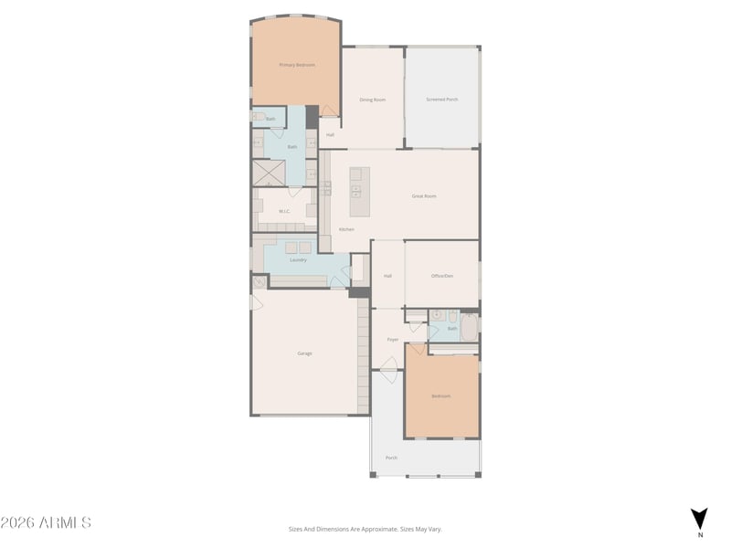 Listing details for 17963 Silver Sage Ln, Rio Verde, AZ 85263 : Welcome to Trilogy at Verde River! This corner-lot home with a desirable floor plan borders a common area and features a charming front patio complete with a beautiful iron front door. The layout includes two bedrooms, two bathrooms, and a den. The open kitchen offers granite countertops, a large island with a breakfast bar, and a walk-in pantry. Dual sliding doors create a seamless indoor-outdoor connection, including a multi-panel slider from the dining room that opens to a screened-in patio for added privacy and shade. The primary suite features shutters and a luxurious ensuite with granite dual sinks, a tiled shower, and a walk-in closet with built-in drawers. Enjoy the Sonoran Desert backyard with serene desert landscaping. Additional features include reverse osmosis, a water softener, a security system, and built-in garage cabinets. The laundry room offers abundant cabinetry, a hanging rod, and two built-in desks. Do not miss out on this Verde River gem!