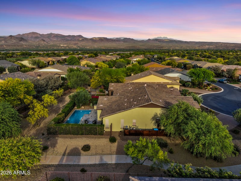 Listing details for 17964 Silver Sage Ln, Rio Verde, AZ 85263 : ULTIMATE PRIVACY, CORNER LOT & your own private POOL and SPA! This beautifully upgraded Juniper plan with SLIDING WALL of GLASS and covered private terrace in the heart of coveted Trilogy at Verde River exemplifies classic Arizona Living! Spacious, WIDE OPEN yet efficient floorplan features 2 beds/ 2 baths and a separate smart space desk area. The unique location is adjacent to NATURAL OPEN SPACE & beautifully maintained common area. Sophistication, Style & Elegant finishes throughout! COVERED PATIO perfect for entertaining. Kitchen offers upgraded CABINETS, sleek countertops AND MORE! Stunning wood look tile flooring throughout.
