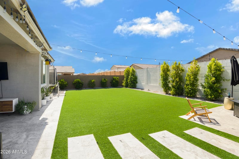 Listing details for 17976 Ashley Dr, Goodyear, AZ 85338 : Welcome to your STUNNING 4 bedroom, 3 car garage, single story home! Gorgeous curb appeal with front yard turf landscaping, paver driveway, and gated courtyard patio! Step inside to the large open concept great room with beautiful upgraded 4 panel slider. Modern kitchen with stainless appliances, quartz countertops, gas range, range hood, stylish backsplash, and island with breakfast bar! Primary bedroom with ensuite, dual sink vanity with a large walk-in shower and walk-in closet! Your backyard oasis is complete with over $30k in gorgeous landscaping! New turf, beautiful travertine tiles, ficus columns, modern white wall, cafe lights, and plenty of open space for storage behind your RV gate! PLUS a true 3-car garage! Great location with plenty of entertainment minutes away! Welcome home!