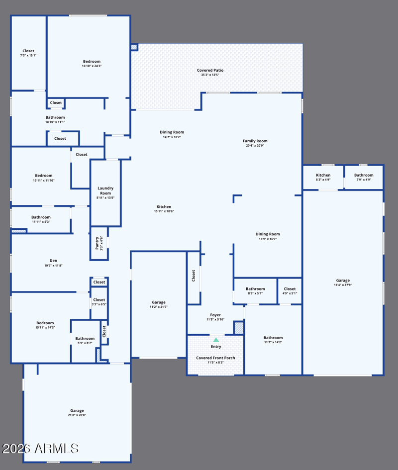 Listing details for 18209 Colter St, Litchfield Park, AZ 85340 : Welcome to Azure Canyon, where functionality meets flexibility in one of the most sought after layouts in the area. This 2023 built home offers a spacious open concept design with a large kitchen island that flows seamlessly into the main living area, creating the perfect space for everyday living and entertaining. What truly sets this home apart is the oversized RV garage that has been thoughtfully converted into a fully functional bonus space complete with its own AC unit, kitchenette, and full bathroom. Whether you're looking for a game room, guest suite, home gym, or multi generational setup, this space offers endless possibilities. The split floor plan is designed with both privacy and convenience in mind, with all bedrooms offering direct bathroom access. One of the secondary bedroom features its own private bathroom, functioning similarly to a second primary suite and ideal for guests or extended living arrangements. A separate bonus living area between the secondary bedrooms adds even more flexibility as a media room, playroom, or home office. The backyard is clean and low maintenance with plenty of room to design your ideal outdoor setup. Located in a growing West Valley community with convenient access to shopping, dining, and freeway access, this home offers the opportunity to move right in without the wait of new construction.