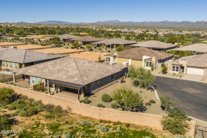 Listing details for 18235 Coronado Cave Ct, Rio Verde, AZ 85263 : Discover refined luxury in this beautifully appointed Valletta floorplan. The great room features an impressive multi-slide door that opens to stunning mountain views, creating the perfect indoor-outdoor living experience. The gourmet kitchen is a showstopper with built-in Monogram stainless steel appliances, quartz countertops, a striking waterfall-edge island, soft-close cabinetry, and convenient roll-out drawers. Step outside to enjoy the elegant platinum pergola, ideal for relaxing or entertaining. Additional upgrades include both RO and soft water systems, enhancing everyday comfort. Thoughtfully designed with upscale finishes throughout, this home blends style, function, and scenic surroundings.