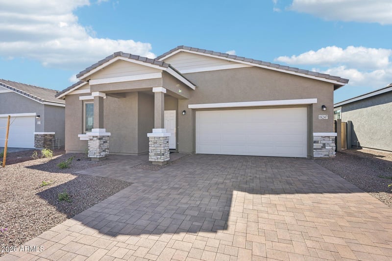Listing details for 18247 Camino De Oro --, Surprise, AZ 85387 : Brand new community in Surprise! This stunning single story home offers 1,567 sq ft of functional living space. It features 3 bedrooms, 2 bathrooms, and a 2-car garage. The open concept kitchen is perfect for entertaining and features an Island, a walk-in pantry and stainless steel appliances. It also offers our Timeless Collection which includes white 42'' cabinets, ivory white quartz kitchen countertops, mosaic white tile kitchen backsplash, and 7x22 wood looking plank tile in all the common areas. The great room offers a 4-panel center sliding glass door so you can step out into your covered patio to enjoy indoor/outdoor living in your backyard with friends and family. The primary suite has a spacious walk-in closet, double sinks, walk-in shower, and an additional linen closet for extra storage. This home also features a paver driveway, 8-foot interior doors, soft water loop, and all appliances included making it move in ready! Great location close to dining, freeways, parks, and entertainment!