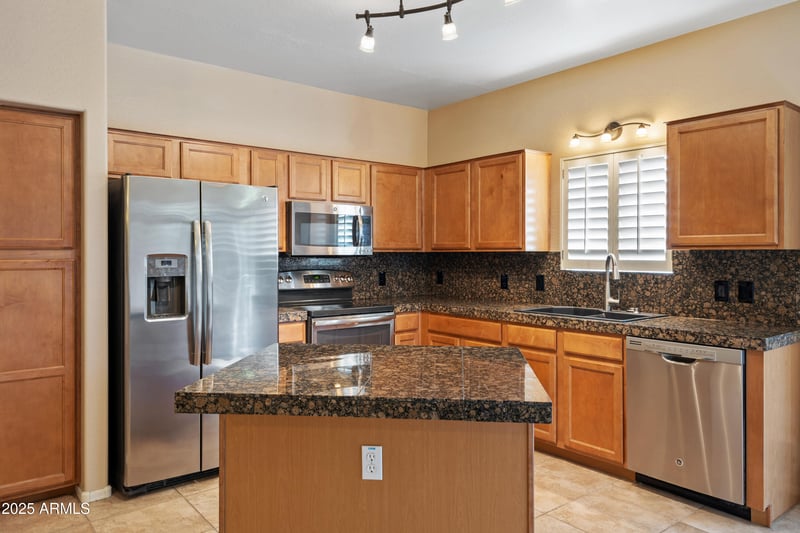 Listing details for 18250 32nd St #1015, Phoenix, AZ 85032 : Beautiful 3-bedroom, 2.5-bath end unit townhome located in a quiet, gated community in a highly desirable area. New Trane AC 2025. This open and spacious floor plan features a well-appointed kitchen w/ island & granite tile countertops, seamlessly opening to the dining area & family room with direct access to a private backyard & covered patio perfect for indoor/outdoor living. Plantation shutters t/o and an additional downstairs room offers flexibility as a living room, home office, or media space. The primary suite upstairs boasts a private bath and walk-in closet, while two additional generously sized bedrooms share a full bath. A convenient powder room on main level. Ideally situated near Loop 101 and Paradise Valley Community College. Washer, dryer, and refrigerator are included..... truly move-in-ready home. Enjoy the benefits of an open end unit adjacent to open space, just steps from the community swimming pool. The two-car garage features an epoxy floor and direct entry into the home. Very nice this one is a must-see!