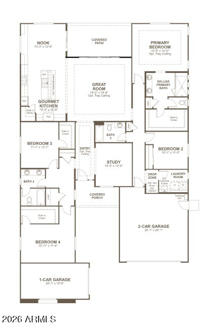 Listing details for 18344 Laurie Ln, Waddell, AZ 85355 : Discover this must-see Pomona home, situated on a desirable homesite boasting driveway pavers and front yard landscaping. Included features: a welcoming covered porch; a large great room; a gourmet kitchen offering 42'' cabinets, quartz countertops, a waterfall island and a walk-in pantry; a roomy nook; a quiet study; a lavish primary suite showcasing a generous walk-in closet and a deluxe bath with double sinks; a convenient laundry; a drop zone and a covered patio. This home also offers stone tile flooring and ceiling fan prewiring in select rooms
