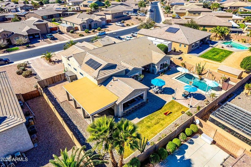 Listing details for 18360 Montecito Ave, Goodyear, AZ 85395 : MOTIVATED SELLER!!!!! Exceptional estate on an oversized lot in Sedella featuring a custom 55' deep x 20+' wide climate-controlled RV garage with private kitchen and bath, plus a 2-car tandem garage and solar system. Designed for refined living, the gourmet kitchen showcases granite countertops, built-in appliances, gas cooktop, expansive island, and walk-in pantry. The private owner's retreat offers a spacious walk-in closet and serene separation from secondary bedrooms with en-suite bath. A dedicated den provides the perfect executive home office.