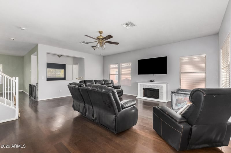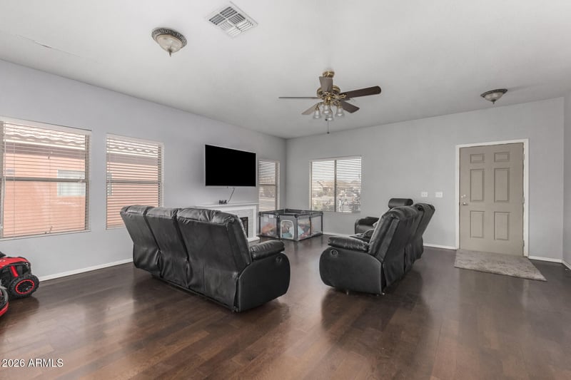 Listing details for 1837 Greenway Ln, Casa Grande, AZ 85122 : Spacious 4-bedroom, 2.5-bath home offering 2,526 sq ft in the Desert Crossing community of Casa Grande. This two-story KB Home features multiple living areas including a great room and loft, plus a full primary suite with walk-in closet. The kitchen includes built-in microwave, dishwasher, and ample cabinet space. Situated on a generously sized 7,731 sq ft lot with a covered patio and mountain views. Home also includes leased solar, central A/C, and a 2-car garage. Conveniently located near schools, parks, and major routes. Sellers prefer that the property be sold as-is. This home offers great potential for buyers looking to make it their own.