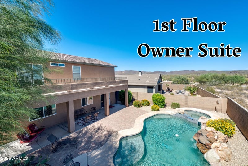 Listing details for 18375 San Ignacio Ct, Gold Canyon, AZ 85118 : ***WOW! Fabulous ***FULLY FURNISHED/TURN KEY FORMER MODEL HOME*** 2900 Square Foot Home with FIRST FLOOR OWNERS SUITE, Sparkling POOL/SPA, 5 BEDROOM, 3.5 Baths + BONUS ROOM on a GREAT MOUNTAIN VIEW LOT with No Homes Behind! ***MUST SEE! ***GREAT VALUE under $200 per sq ft! ***EVERYTHING IS INCLUDED! ***You'll love WALK-IN CLOSETS in EVERY BEDROOM and...the Stunning, UPGRADED, STAGGERED HEIGHT CABINETS, Huge, walk in pantry, GORGEOUS GRANITE, Stainless Appliances, BUTLERS PANTRY, KITCHEN ISLAND & Much More! MUST SEE! ***Don't miss the park and picnic area, complete with multiple BBQ Ramadas....all surrounded by state land to enjoy 4x4 adventures! ***Don't wait too long to come check out this Beautiful, well appointed home and start enjoying the awesome GOLD CANYON LIFESTYLE!