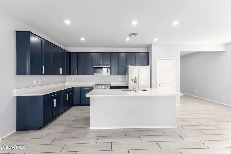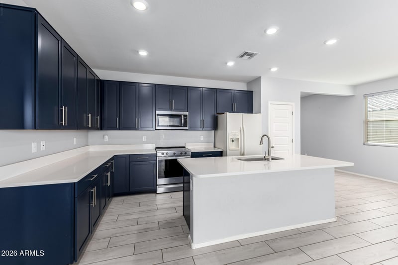 Listing details for 18400 Donato Dr, Gold Canyon, AZ 85118 : Enjoy modern desert living in this beautifully upgraded 4 bedroom, 2 bath 2023 build in Gold Canyon. The open kitchen and living room layout creates a bright, spacious environment ideal for everyday living and entertaining. Upgraded tile flooring runs throughout, and the thoughtful split floorplan offers privacy with the primary suite separated from the additional bedrooms. The primary retreat features a full bathroom with dual sinks and a large walk-in closet, while the guest hall bath also includes double sinks. Step outside to a well-designed backyard perfect for entertaining, complete with a covered patio, patio pavers, turf, and low-maintenance landscaping with front and back irrigation. Additional features include numerous builder upgrades, water softener, and garage shelving.