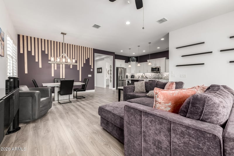 Listing details for 18427 Clinton St, Surprise, AZ 85388 : Welcome to this spacious 4-bedroom, 3-bath home in a quiet Surprise neighborhood. Featuring tall ceilings and wide hallways, the open layout feels bright and welcoming--perfect for everyday living and entertaining. The kitchen flows into the main living area, creating a great space to gather with family and friends.