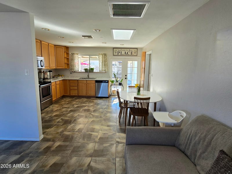 The highlight of the property is the expansive backyard, offering stunning, mountain views from the extended patio. Hobbyists will love the detached 300 sq. ft. garage/workshop, fully equipped with A/C for year-round projects or storage. Whether you're looking for a primary residence or a desert retreat, this move-in-ready gem offers the perfect blend of essential upgrades and versatile outdoor space. Don't miss your chance to own a piece of the Arizona landscape