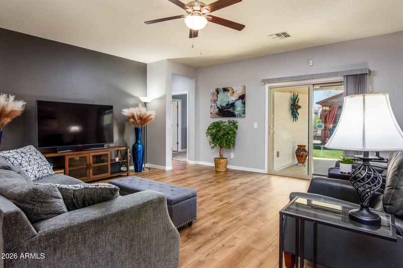 Listing details for 18481 Cook Dr, Maricopa, AZ 85138 : SUPER NICE AND READY TO MOVE IN! Enjoy the cozy gazebo in the backyard to relax and unwind. WI-FI Timer on landscape water system ensures your system is working properly. Open floorplan for comfort and function. Kitchen has granite, water filtration system, convection/air fryer/microwave combo. *Some furnishings available for sale outside escrow. Walking distance to Heritage Charter School. As part of the incredible master planned community of Glennwilde Groves, you'll find there are plenty of activities for the whole family! Glennwilde Groves features 2 pools, 10 tot lots and a soccer field. Nearby is a catch-and-release lake as well as softball and baseball fields. Enjoy the beautiful surroundings by having a picnic by the lake, or taking a stroll on one of the many green belt paths.