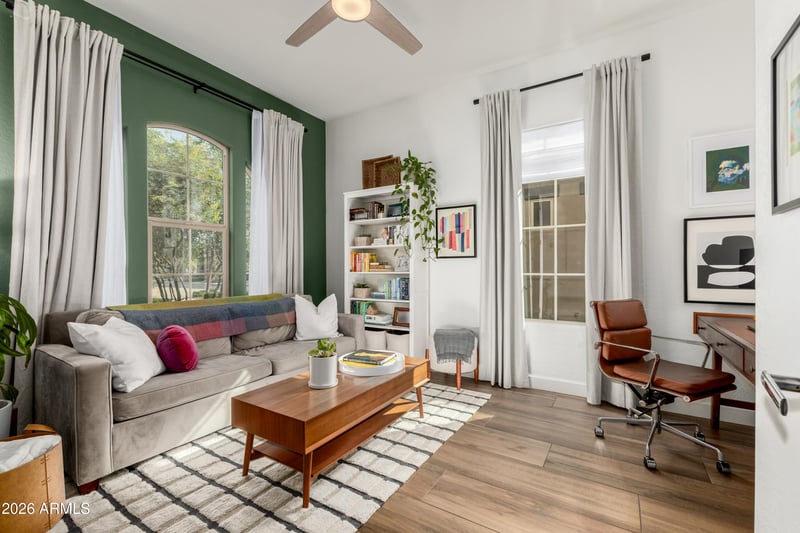 Listing details for 18491 Arrowhead Trl, Queen Creek, AZ 85142 : Experience refined living in the gated community of Rosewood Grove with this beautifully designed luxury residence offering more than 3,240 square feet of thoughtfully crafted space. Featuring 4 spacious bedrooms plus a den and loft, 2.5 bathrooms, and bright open living areas filled with natural light, this exceptional home blends elegance with comfort at every turn. A welcoming foyer leads to a private den or office with French doors, and flows into the stunning great room showcasing luxury plank tile flooring, soaring ceilings, and a formal dining area highlighted by a charming bay window. Expansive sliding glass doors create a seamless connection between indoor and outdoor living, perfect for effortless entertaining. The downstairs power room & central vac system throughout provide added convenience. The gourmet kitchen is truly a showpiece, complete with a striking beamed ceiling, gorgeous granite countertops, crisp white cabinetry with crown molding, high end stainless steel appliances, a custom glass tile backsplash, R/O drinking water, and an oversized island ideal for gathering. An inviting seating area and sunny dining nook provide the perfect setting for casual meals and relaxed mornings. The first floor primary suite is a serene retreat featuring vaulted beamed ceilings and a spa inspired en suite bath with dual vanities, a soaking tub, walk-in shower, and two generous walk-in closets. Upstairs, a spacious loft offers additional flexibility alongside three guest bedrooms and two bathrooms, including one bedroom with its own private en suite. Step outside to a covered patio with extended pavers overlooking a beautifully landscaped backyard designed for relaxation and enjoyment. Ideally located just minutes from top rated schools, premier shopping, dining, golf, recreation areas, and convenient freeway access, this remarkable home offers luxury living in an unbeatable location.