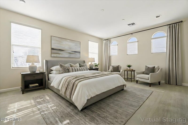 Listing details for 18513 94th St, Scottsdale, AZ 85255 : Move-in Ready 3 bed/3 bath townhome in the exclusive gated neighborhood Villas at DC Ranch. This modern classic design compliments an open & spacious floor plan. Notice the tall ceilings & tile flooring throughout the main living area. Gourmet kitchen features Granite counters, subway tile back splash, staggered wood cabinets, gas cook top & Stainless Steel appliances. Kitchen is open to a dining area & spacious living room that overlook the private courtyard. Luxurious master retreat and spa-like master bath offers granite counters, double vanities, glass shower, soaking tub & spacious walk-in closet. Guest bedroom & full bath on the main level. Washer/dryer convey. You'll absolutely love this intimate gated enclave of homes offering luxury living w/ the ease of a lock & leave lifestyle. Indulge in the amenities of the highly sought after DC Ranch community including multiple heated pools/spas, fitness center, playgrounds, pickleball, tennis courts, basketball courts, BBQ & Ramada's for events. There are 47 parks interconnected by over 50 miles of landscaped trails for walking, hiking & biking. Location...Location!! Mayo Hospital and the 101 freeway are just minutes away. Convenient to Scottsdale Airport, WestWorld, Kierland Commons, Scottsdale Quarter, Scottsdale 101, and Desert Ridge all offering lively entertainment, award-winning restaurants, world-class shopping and everything Scottsdale has to offer!