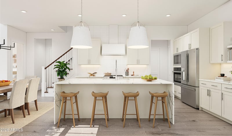 Listing details for 18522 64th St, Phoenix, AZ 85054 : Discover luxury living at Prestige on 64th, with exceptional amenities and convenient access to shopping and dining. The beautifully designed Sea Bright plan offers a spacious layout ideal for both entertaining and everyday living. A dramatic double-height ceiling enhances the open great room, flowing seamlessly into a stunning kitchen with warm Quill-stained cabinetry, marble-look quartz counters, and sleek White Café appliances. A first-floor bedroom is perfect for guests, a home office, or gym. Upstairs, a loft creates the perfect retreat, while two additional bedrooms provide comfort and space. The private primary suite features a resort-style bath with dual vanities and a large walk-in shower. This thoughtfully designed home blends style, function, and modern elegance.