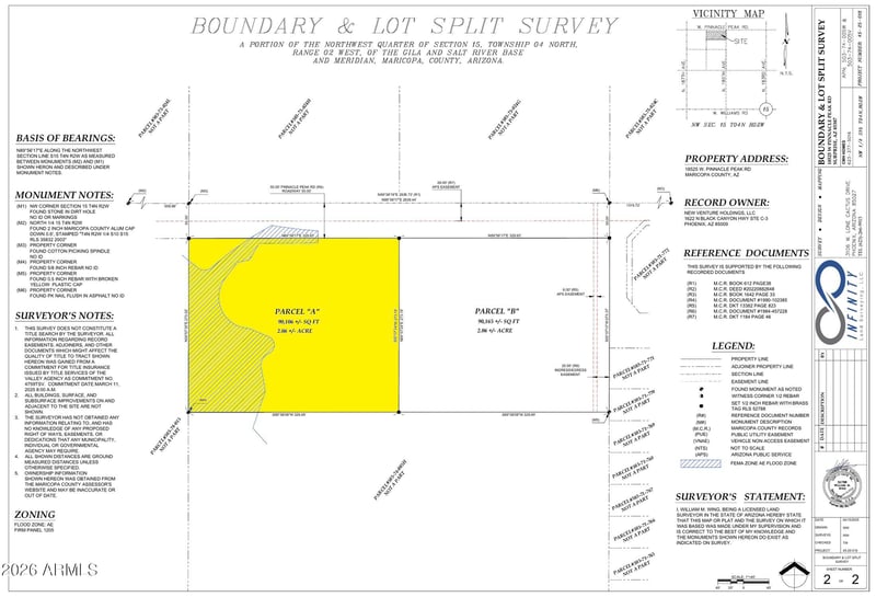Listing details for 18579 Pinnacle Peak Rd #-, Surprise, AZ 85387 : LARGE 2.06 ACRE LOT FOR SALE IN SURPRISE, AZ. POWER & WATER FROM 2-WAY SHARED WELL CLOSE BY. CONVENIENT LOCATION THAT HAS EASY ACCESS TO SHOPPING, RESTAURANTS, & SCHOOLS. AMAZING PANORAMIC VIEWS & ARIZONA SUNSETS! CITY OF SURPRISE ZONING R-R. MARICOPA COUNTY APN 503-74-995. DIRECTIONS: PINNACLE PEAK RD/185TH AVE- WEST ON PINNACLE PEAK TO APPX 186TH AVE ALIGNMENT (UNMARKED). LOT ON SOUTH SIDE OF RD.