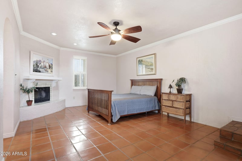 Listing details for 1860 Grandview St, Mesa, AZ 85203 : Welcome to this 3-bed, 3-bath, 2 car garage home with large basement. The property is set on a massive 19,201 SQFT lot! Perfect for entertaining, the home features formal living and dining rooms, plus a finished basement with a cozy fireplace. The Primary Suite serves as a private sanctuary with its own romantic fireplace, dual vanities and oversized closet.