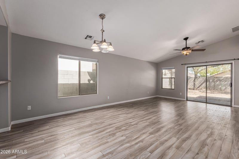 Listing details for 1868 Desert Seasons Dr, San Tan Valley, AZ 85144 : Welcome to this beautifully maintained 4-bedroom, 2-bath single-story home in the desirable Skyline Ranch community! Enjoy low-maintenance desert landscaping and a spacious interior featuring vaulted ceilings and a generous kitchen with upgraded cabinetry and a breakfast bar. New carpet adds a fresh touch to all bedrooms. The master en-suite impresses with a double vanity, walk-in shower, separate soaking tub, and a spacious walk-in closet. The secondary bath offers a double vanity and tub/shower combo. Additional highlights include an interior laundry room, 2-car garage, a covered patio and spacious backyard!
