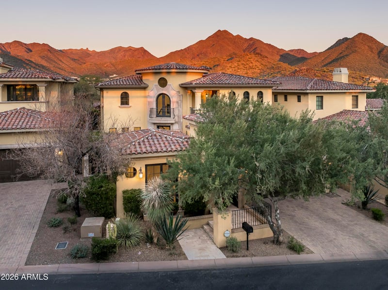 Listing details for 18749 101st St #- 19, Scottsdale, AZ 85255 : Sweeping mountain views in Silverleaf! An extremely rare find at this price in one of Arizona's most coveted addresses. A turn-key opportunity as the home is offered FULLY FURNISHED Stylish and current design is accented by breathtaking panorama of the McDowell Mountains. Desirable location within the community - just blocks to the guard gate, the Silverleaf Clubhouse, and the Village Health Club at DC Ranch. This home boasts a dramatic open concept floor plan and distinctive features such as a grand rotunda entry with curved staircase, vaulted great room that opens to kitchen, versatile office/den on the main floor plus a separate entry guest casita. Main level primary suite captures mountain views and features wet bar, walk-in closet, dual vanities with marble tops, soaking tub and walk-in shower. Two oversized guest suites plus a loft area are found on the second floor. State-of-the-art interior finishes include wide-plank hardwood floors, Wolf double-ovens and steam oven, Wolf 6 burner cooktop, temperature-controlled wine room, grand great room fireplace with wood paneling and marble facing, Crestron A/V system and lighting, whole home water filtration, large walk-in pantry, 3 car tandem garage with epoxy flooring and built-in cabinetry. Charming center courtyard features lockable gate and sitting area with water feature, creating an elegant, private entry. Ultimate Arizona outdoor living is found in the backyard with large covered patio with misters, plus adjacent Wolf BBQ center, water feature, firepit, additional hardscape, and heated splash pool/spa enhanced by nearly unobstructed views of the majestic McDowell Mountains.
