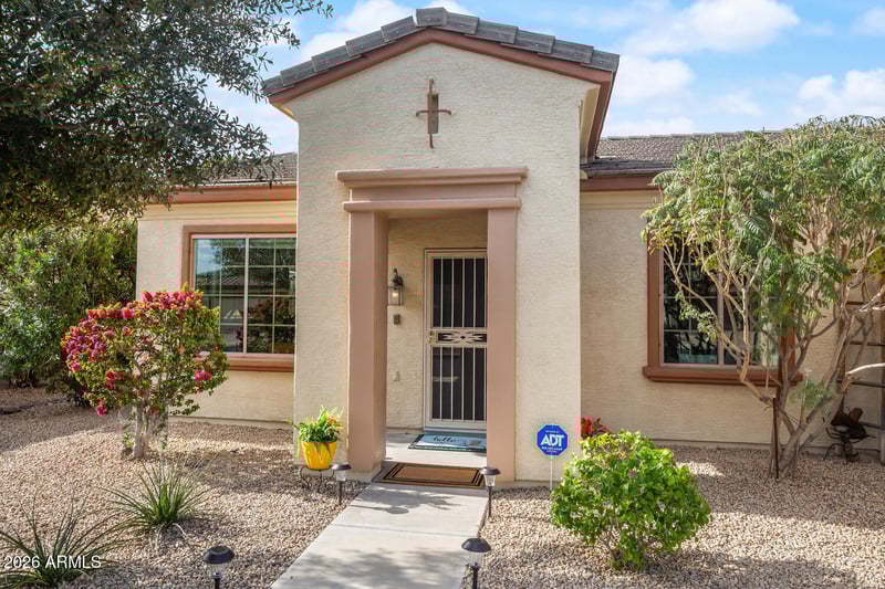 Listing details for 18754 Summerbreeze Way, Surprise, AZ 85374 : This popular Legacy model is a light & bright cottage home, located close to shopping, medical, & of all The Grand's wonderful amenities! This home has been meticulously maintained with numerous improvements, including new roof 2024, AC/furnace replaced 2018, water softener 2023, laminate flooring in 2020, quartz countertops in 2020, sunscreens in 2023, stackable washer/dryer 2022, and exterior paint in 2023. Mature fruit trees & a covered patio grace the large backyard, & front landscaping is maintained by the HOA. Move-in ready with tasteful, comfortable colors throughout. Some furnishings convey! Get ready to experience this vibrant, 55+ golf community with numerous clubs, activities, resort-style rec centers, pools, pickleball, and much, much more! Arizona sunshine awaits you