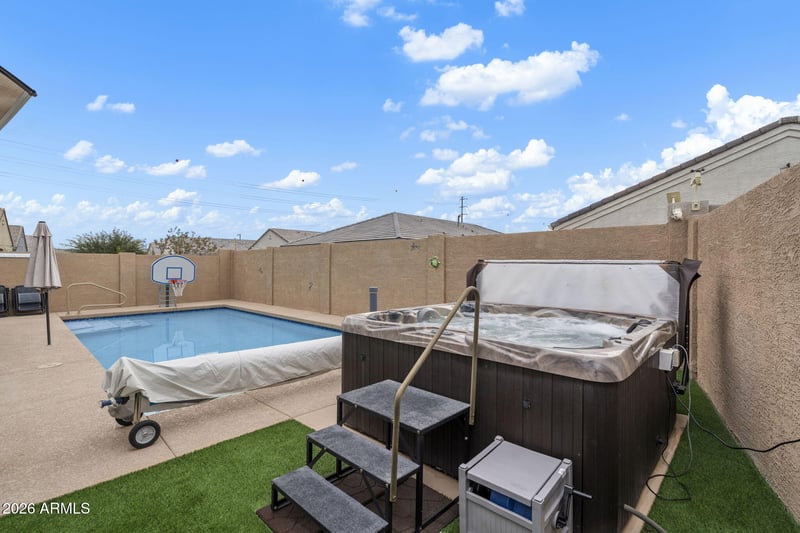 Listing details for 18789 Jefferson St, Buckeye, AZ 85326 : Go ahead and buy a new build for 400k, then put in a 150k - 200k backyard. Ouch! Instead, our loss is your gain. You get the 150k backyard, solar panels, turf, salt water spa, covered patio/BBQ, heated pool, softener, reverse osmosis, garage cabinets & butler pantry for FREE! Home shows like the models. Move into zero work, day 1. And the neighbors, they have Thanksgiving together. No highway noise. No dairy farm air. Hurry this pool house will not last. Agents: All expenses PAID!