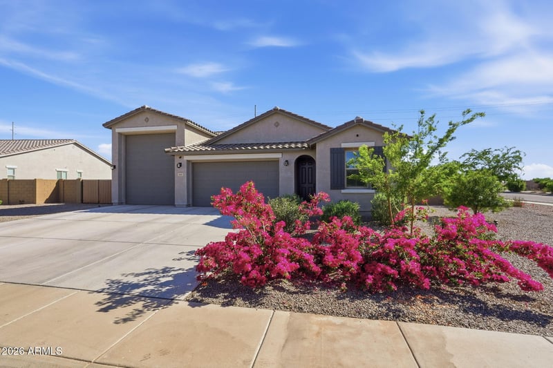 Listing details for 188 Naples Ln, Casa Grande, AZ 85122 : Beautifully maintained and better than new, this one-owner home offers 3 bedrooms, 2 bathrooms, a 2-car garage, and a highly sought-after RV garage with dual access doors, all perfectly situated on a premium corner lot. From the moment you arrive, you'll feel the pride of ownership in this meticulously cared-for home, just over 2 years old. Inside, the open-concept design invites you to gather around the spacious kitchen island, perfect for entertaining friends or enjoying everyday moments. The home is thoughtfully upgraded with plank tile flooring, quartz countertops, plantation shutters, and oversized ceiling fans in both the living room and primary suite for added comfort and style. A double sliding glass door seamlessly connects the indoor living space to the backyard, enhancing the home's light, openness, and true indoor-outdoor lifestyle. Step outside to your private backyard oasis, where every detail has been designed for relaxation and entertaining. Enjoy the stunning in-ground pool with a tranquil waterfall feature, surrounded by travertine tile, artificial turf for easy maintenance, and a beautiful ramada for shaded outdoor living. A separate fenced and landscaped area with real grass adds versatility and is ideal for pets or play. The RV garage with doors on both ends, along with an RV gate, offers exceptional functionality and convenience for all your toys and storage needs. Unwind in the evenings with beautiful mountain views and Arizona sunsets right from your backyard. Whether you're hosting gatherings or enjoying a quiet night at home, this property truly delivers the best of indoor-outdoor living. This is more than just a home, it's where comfort, quality, and lifestyle come together.