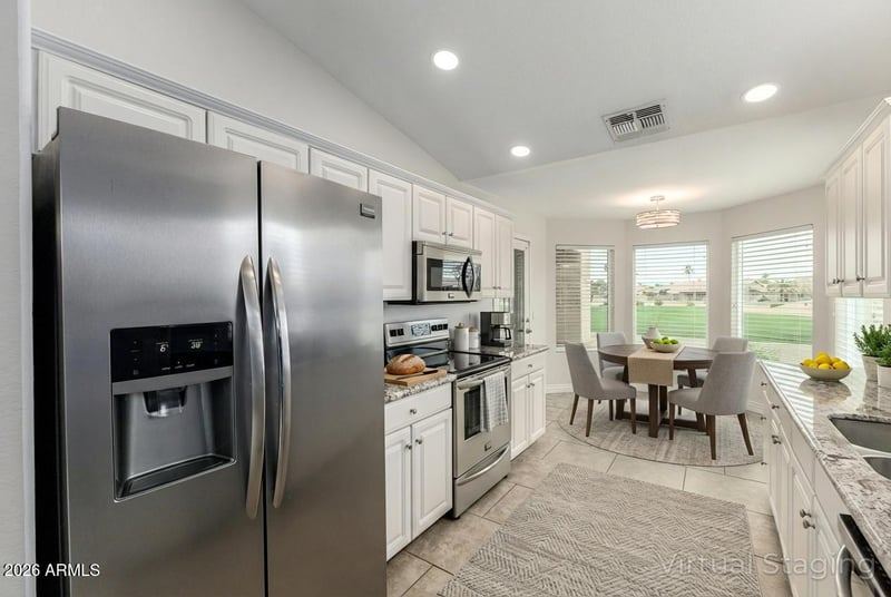 Step outside to your private travertine patio (installed 2017) with a built-in fire pitan ideal place to relax, entertain, and soak in the expansive fairway views.