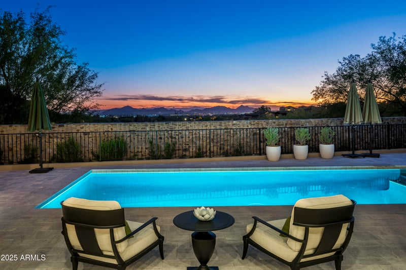 Listing details for 18950 Silverleaf Dr, Scottsdale, AZ 85255 : SILVERLEAF GOLF MEMBERSHIP Available! Classic, sophisticated yet livable design with perfectly framed, unobstructed views to city lights, Camelback Mountain and the majestic McDowell Mountains! This RECENTLY COMPLETED residence in The Village at Silverleaf offers 4 bedrooms, 6 bathrooms, and approximately 5,632 square feet of refined living space across three levels with the primary suite on the main floor. Designed for the ultimate in Club living, this property is just steps from the Silverleaf clubhouse and spa, as well as the world-class golf practice facility. This exceptional home showcases reclaimed wood beams, wide-plank wood flooring, custom Lutron lighting, automated shades, custom media area with built-in bar, and a private elevator connecting all levels. Every detail has been carefully curated with the finest hand-selected finishes, including a designer kitchen featuring an upscale Wolf and Sub-Zero appliance suite. The indoor and outdoor living spaces blend seamlessly via large steel and glass doors and a spacious covered outdoor living area. The private custom pool and spa capture sweeping mountain views with ample space to enjoy all that Arizona living has to offer. This home is part of an exclusive enclave of homes ideally situated adjacent to the renowned Silverleaf Club. This home represents an extraordinary collaboration between Don Ziebell of Oz Architects and luxury builder Rod Cullum, offering a seamless blend of craftsmanship, sophistication, and effortless living in one of Arizona's most prestigious communities. Full golf membership for the Silverleaf Club is available with the purchase of this property at Buyer's expense, allowing a Buyer to circumvent the lengthy waitlist and gain immediate access upon approval. Silverleaf is a master-planned community in North Scottsdale featuring timeless architecture, world class club amenities, guard-gated privacy, and easy access to nearby shopping, dining, hiking and the Loop101.