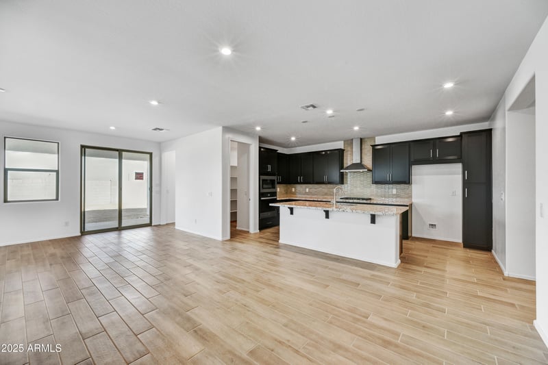Listing details for 18950 Stella Ave, Waddell, AZ 85355 : Your Forever Home Awaits in Marbella at Windrose! Discover the popular Irwin floorplan, offering 2,229 sq. ft. of thoughtfully designed single-level living - perfect for those looking to downsize without sacrificing space. This home features 3 bedrooms, 2.5 bathrooms, and 3-car tandem garage, providing plenty of room for guests, hobbies, and storage. The chef's kitchen, boasting a built-in microwave and wall oven, gas cooktop, stainless steel hood, and a stunning backsplash stacked to the ceiling. Elegant espresso cabinets, granite countertops, and an oversized island make this space ideal for hosting family gatherings or enjoying quiet mornings. Step into the large great room and separate dining area, designed for easy entertaining and everyday comfort plus INCLUDED SOLAR!