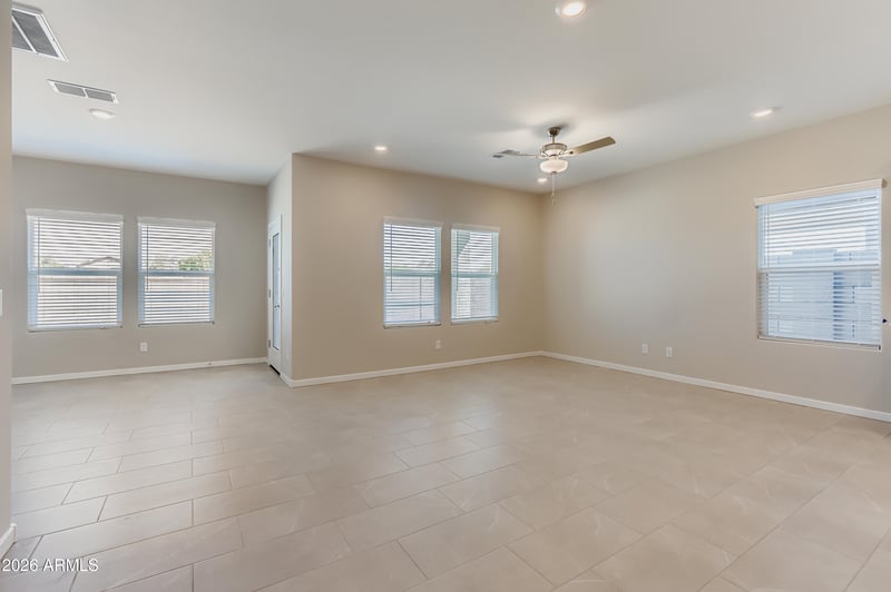 Listing details for 18953 Avelino Dr, Maricopa, AZ 85138 : Move-in ready! Spacious layout featuring 4 bedrooms and 2 bathrooms, where the kitchen effortlessly flows into the family and dining rooms - perfect for entertaining or cozy nights in. Imagine cooking in your dream kitchen, complete with Neutral gray cabinetry, and stunning quartz countertops matching in both the kitchen and baths. Luxury 12x24 tile flooring throughout adds a modern elegance touch along w/two-tone interior paint creates a fresh atmosphere. The split bedroom layout offers extra privacy.
