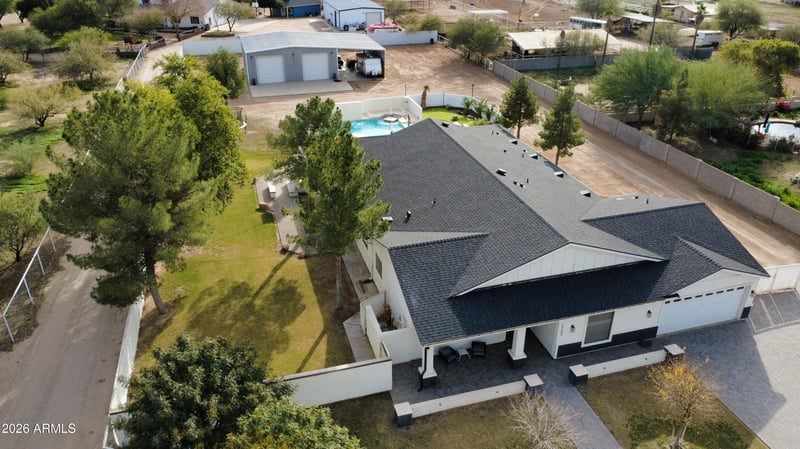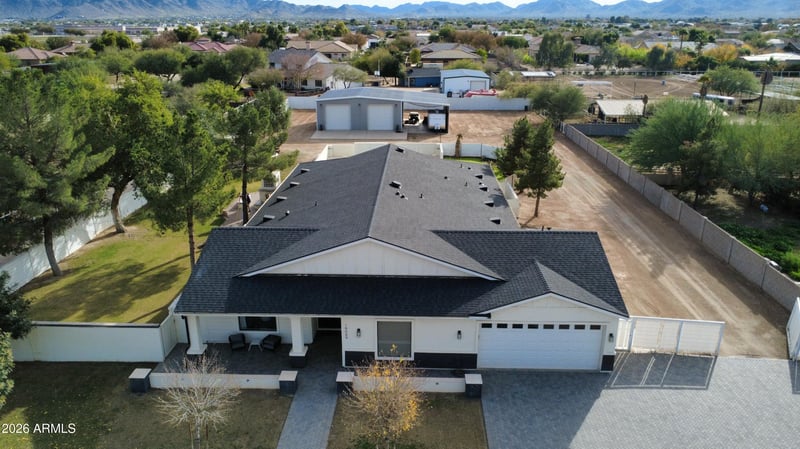Listing details for 19049 Cloud Rd, Queen Creek, AZ 85142 : Experience luxury in this fully remodeled estate on the border of Gilbert and Queen Creek with no HOA. Offering 4 bedrooms (room for 5) and 3.5 baths, the home was completely remodeled and features a movie/media room, formal dining, custom lighting, iron front and back doors, and an open-concept kitchen with new KitchenAid appliances, quartz countertops, oversized island, custom pantry, wine cooler, and motorized shades throughout.