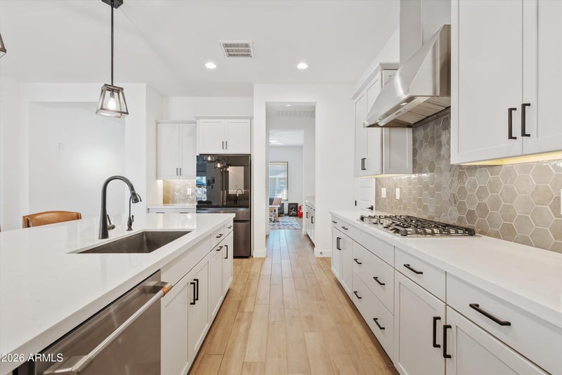 This is quite literally the laundry room of your dreams with built-in cabinetry and feature wall. In the primary suite, find a large walk-in closet, MASSIVE primary bathroom with double vanities, separate shower and tub.