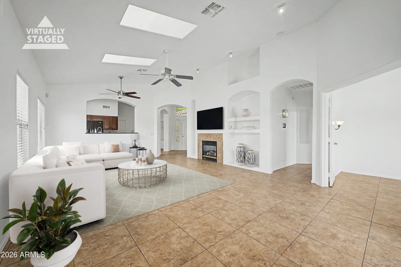 The open floor plan features vaulted ceilings and abundant natural light throughout. The kitchen flows seamlessly into the main living areas, making it ideal for both everyday living and entertaining.