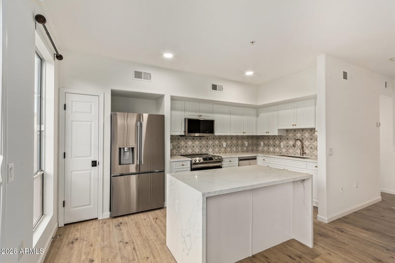 Listing details for 1920 Bell Rd #1187, Phoenix, AZ 85022 : Welcome to this move-in-ready townhouse in the highly desirable Parkside Community. This 2-bedroom, 2.5-bath home features an open-concept floor plan with fresh interior paint, upgraded carpet, and wood flooring. The kitchen offers quartz countertops, updated cabinetry, and appliances. Additional features include spacious bedrooms, a private balcony, and included refrigerator, washer, and dryer for added convenience. The home is ideally located near walking trails and greenbelt, dog-friendly areas. Community amenities include a heated pool and spa, fitness center, media room, and children's playground. Conveniently located minutes from shopping, dining, and entertainment.