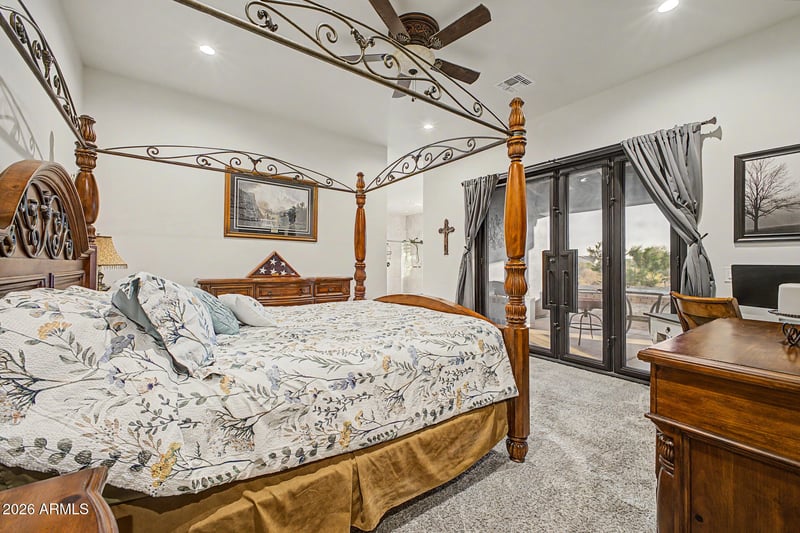 Listing details for 19211 Seldon Ln, Waddell, AZ 85355 : Custom home on ¾+ acre in desirable gated Sonoran Ridge Estates. Open layout with 10' ceilings, gourmet kitchen, 15' vaulted living room, & oversized windows showcasing mountain & sunset views. Features dual primary suites with en-suite baths, walk-in closets & patio access, plus a versatile third bedroom/office. Enjoy outdoor living with covered patios, built-in BBQ & front courtyard water feature. 48' climate-controlled RV garage with hookups offers exceptional space for RVs, boats, luxury vehicles, or workshop. Located just minutes from White Tank Mountain Regional Park, you'll enjoy easy access to hiking, biking, and year-round sunshine--while still being within reach of city conveniences. This home is the ideal blend of comfort, privacy & outdoor lifestyle.
