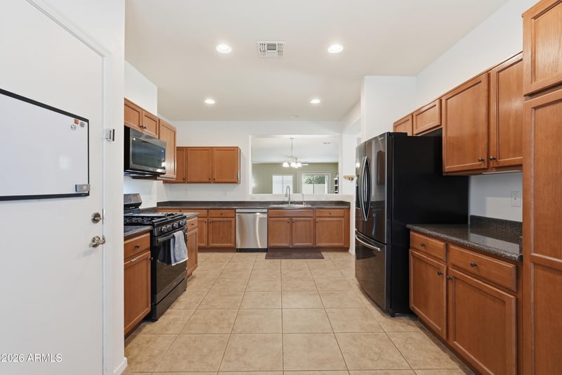Clean and move-in ready, 1776 sq-ft of interior living space, 3 BED + DEN + 2 BATHS + 2 CAR Garage. Open main living area features a light natural color scheme, with ceramic tile flooring throughout the living room, kitchen and baths. Spacious kitchen with a stainless steel appliance package, gas range, can lighting, a cozy breakfast nook and pantry for all your storage needs. Master bedroom features two separate walk-in closets, master bath with double sinks, ceramic tile floors and 2nd walk-in closet. 2 additional bedrooms, plus a Den that would make a perfect study or flex space. Bring your decorating ideas, low maintenance backyard with covered patio, additional concrete pad for a seating or fire pit area, green space for games or pets and a side yard for storage. Close proximity to Skyline Regional Park, I10 and 303 freeway access, shopping, dining, entertainment, health care, 20 min LAFB, 30 min to Phoenix Sky Harbor International Airport.