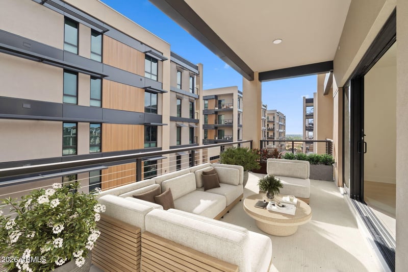 Listing details for 19355 73rd Way #I3027, Scottsdale, AZ 85255 : NEW TO MARKET! QUICK MOVE-IN 3-BEDROOM, 2.5 BATH CONDO with pool views! Located in Belgravia Group's Portico, a new mid-rise community in North Scottsdale's One Scottsdale masterplan. This gated community offers resort-style amenities, including a clubhouse, pool, and fitness center. This stunning residence offers beautifully designed living space, highlighted by a well thought out open layout that flows seamlessly from the living and dining areas to a large private terrace (22' x7'). The chef's kitchen is complete with integrated Sub-Zero, Wolf, and Bosch appliances, Italian cabinetry, a full-height backsplash, built-in pantry with pull-out drawers, under-cabinet lighting, and an elegant 8' waterfall island. Thoughtful upgrades include light wood flooring, a spacious laundry room with cabinetry, and a luxurious upgraded primary bath with a ceiling-mounted rain shower, bench, and wall niche. This home also comes with a developer warranty and two indoor garage parking spaces. Located in North Scottsdale's new luxury corridor at Loop 101 and Scottsdale Road, Portico is perfectly located close to luxury shopping, outdoor adventures, world renowned golf courses, dining, and nightlife.