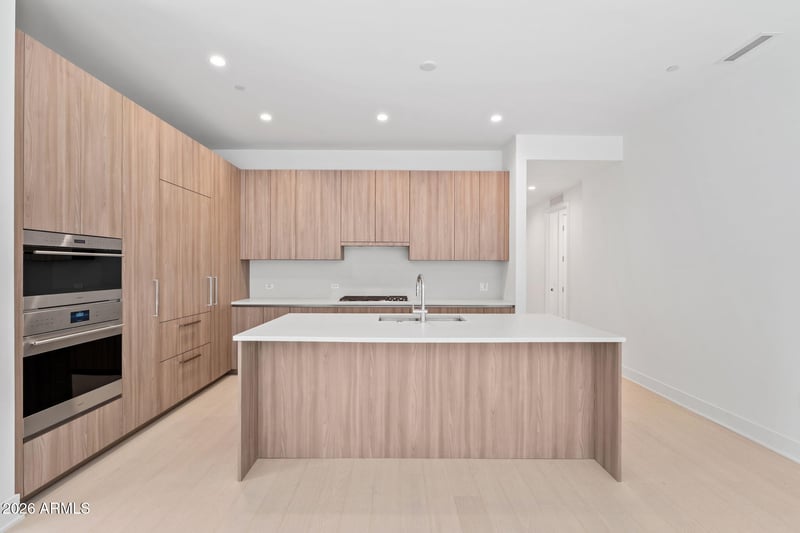 Listing details for 19355 73rd Way #J3027, Scottsdale, AZ 85255 : NEW TO MARKET! QUICK MOVE-IN 3-BEDROOM, 2.5 BATH CONDO with pool views! Located in Belgravia Group's Portico, a new mid-rise community in North Scottsdale's One Scottsdale masterplan. This gated community offers resort-style amenities, including a clubhouse, pool, and fitness center. This stunning residence offers beautifully designed living space, highlighted by a well thought out open layout that flows seamlessly from the living and dining areas to a large private terrace (22' x7'). The chef's kitchen is complete with integrated Sub-Zero, Wolf, and Bosch appliances, Italian cabinetry, a full-height backsplash, built-in pantry with pull-out drawers, under-cabinet lighting, and an elegant 8' waterfall island. Thoughtful upgrades include light wood flooring, a spacious laundry room with cabinetry, and a luxurious upgraded primary bath with a ceiling-mounted rain shower, bench, and wall niche. This home also comes with a developer warranty and two indoor garage parking spaces. Located in North Scottsdale's new luxury corridor at Loop 101 and Scottsdale Road, Portico is perfectly located close to luxury shopping, outdoor adventures, world renowned golf courses, dining, and nightlife.