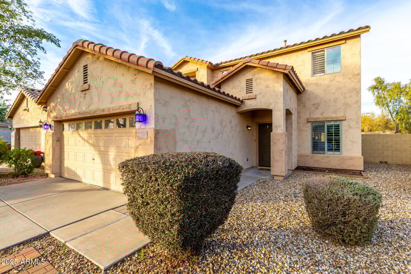 Listing details for 19426 Washington St, Buckeye, AZ 85326 : Welcome to this charming two-story home in the covered Vista De Montana! Nestled on a corner lot, it offers 3 beds, 2 baths + powder room, large loft and a manicured landscape. The inviting interior showcases plantation shutters, a neutral palette, tall ceilings, and soft carpet & wood-look tile flooring t/out. Great floor plan with a formal living room and a bright family room that opens to the kitchen. SS appliances, a pantry, recessed lighting, ample white cabinetry, and an island w/breakfast bar make up the culinary space. All bedrooms await upstairs, along with a cozy loft! The main bedroom has a walk-in closet and an ensuite w/dual sinks. Laundry room with a sink & cabinetry. Enjoy the tranquil backyard with artificial turf, mature tree, and a paver-covered patio! Make it yours