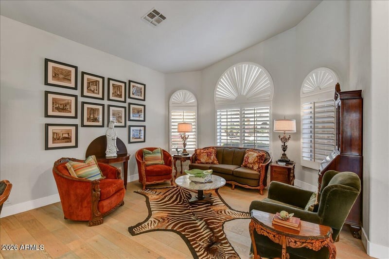 Listing details for 19457 87th Dr, Peoria, AZ 85382 : Experience refined living in this Westbrook Village gem, where exquisite design meets functional luxury. The home features stunning blonde wood floors and elegant architecture, creating a bright and sophisticated ambiance. The heart of the home features an updated kitchen and a spacious layout--a rare 3-bedroom plus den and 3 full baths-perfectly tailored for modern needs. Wood shutters throughout add a touch of timeless class. Designed for entertaining, the home flows seamlessly to a private backyard oasis. Complete with a 3-car garage, this property offers the perfect blend of style and convenience in a premier gated community. All this in prestigious Westbrook Village which features 2 18-hole championship golf courses, heated pools, pickleball, tennis, crafts, card clubs and more! This home features OWNED solar for energy efficiency and the roof underlayment was replaced in 2017. No detail has been left undone in this immaculate home!