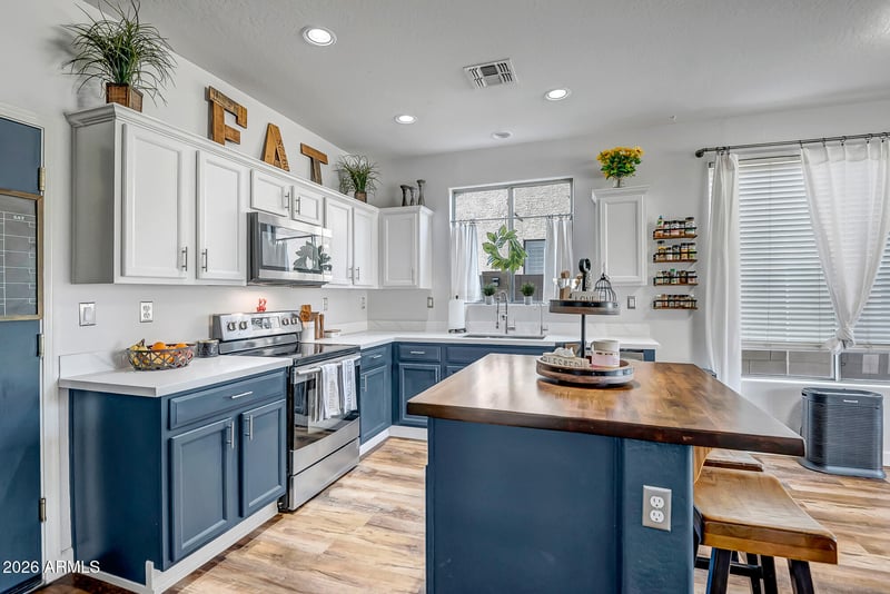 Listing details for 1954 Kuralt Dr, Anthem, AZ 85086 : Wake up to breathtaking mountain views from the private deck off the primary bedroom, the perfect spot to enjoy morning coffee or Arizona sunsets. This beautifully updated home features a remodeled kitchen with newer refrigerator, dishwasher, and microwave, LVP flooring throughout with no carpet, fresh paint, and a water softener. The open loft showcases stylish barn doors, while the updated powder room and custom-painted doors and accent walls add designer appeal. Enjoy outdoor living with a Pebble Tec pool with self-cleaners, hot tub, and built in BBQ. Recent big-ticket improvements include a new 2024 HVAC, a 2022 water heater, and professionally addressed roof repair.