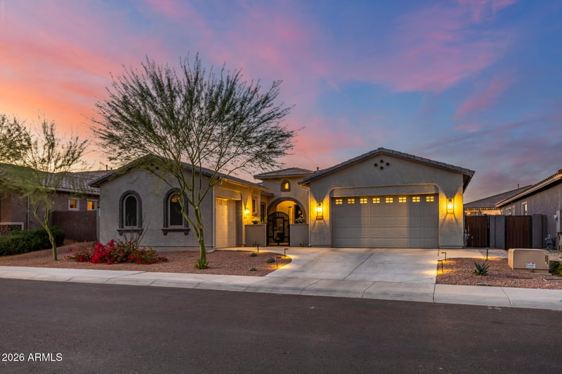 Listing details for 19628 Flower St, Buckeye, AZ 85396 : Welcome to modern elegance! This stunning 4 bedroom gem shows like a model home. Greeted by a 3 car garage and gated courtyard featuring a welcoming cactus garden. Step inside to find a herringbone tile accent foyer and an exquisitely decorated living room where multi-sliding glass doors blend the indoor and outdoor retreats. The gorgeous kitchen features all of today's most desired luxury finishes. The impeccable primary retreat showcases backyard access, his and her closets, and a large, luxurious bathroom which includes laundry room access. The split floorpan has all the right spaces like a home office and an additional media room near the guest bedrooms. The backyard is a showstopper and is an entertainers dream. Swim, grill, relax, and sit by the fire. It feels like a resort here! The backyard features a covered patio, travertine pavers, a phenomenal choice in greenery, low voltage lighting to show it all off at night, and of course the pool is spectacular as well. The pebbletec pool features 3 water fall features, a Baja step, customizable underwater lighting, a large bench underneath the waterfalls, and is self cleaning. The hedges on both sides of the yard provide additional privacy and add lots of green to the space. Every inch of this home feels spotless and it is move in ready for the next owner to love. Please see the attached upgrades list as there is too much to list here! This one should go fast.