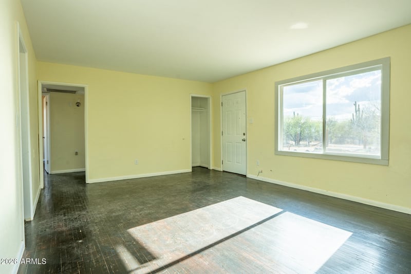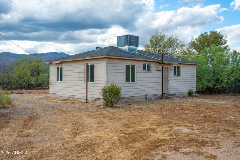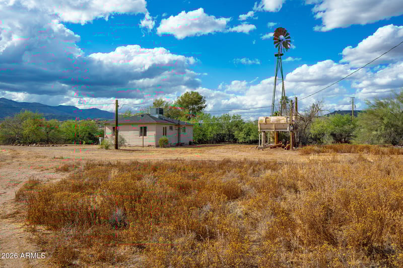Listing details for 19755 Palo Verde Ln, Black Canyon City, AZ 85324 : A sweet slice of Arizona living -- this 2 bedroom, 1 bath home sits on 1.5 acres of flat, fertile land with postcard worthy Bradshaw Mountain views. The home itself is compact and charming at roughly 900 sq ft, featuring wood floors, efficient HVAC, and a simple, welcoming feel.