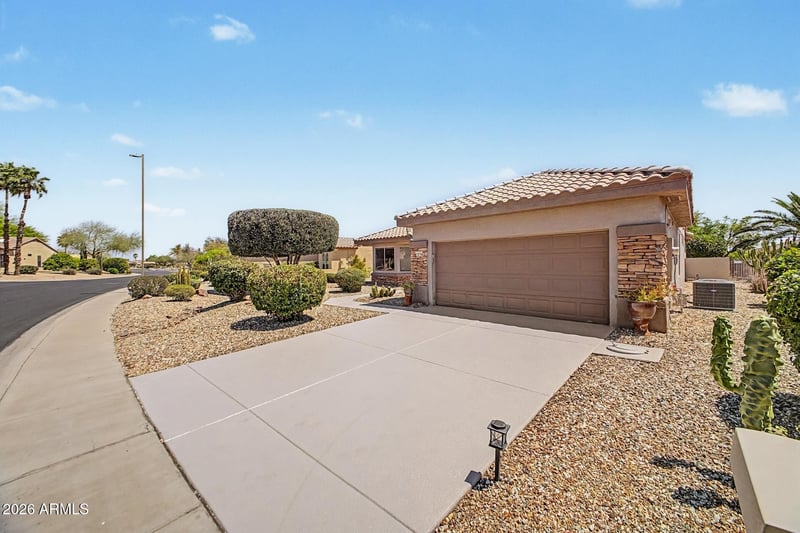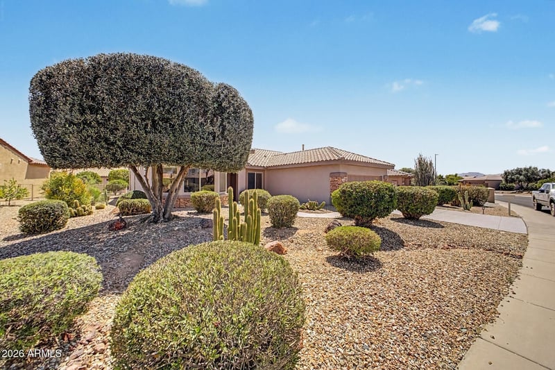 Listing details for 19763 Lone Cactus Dr, Surprise, AZ 85374 : Beautifully maintained single-story home in Sun City Grand! Popular Coronado floorplan featuring 2 bedrooms, 2 bathrooms plus a versatile den/office. Bright eat-in kitchen with bay window, stainless steel appliances, and plenty of cabinet space. Spacious primary suite includes a sitting area, walk-in closet, and views of the backyard. Enjoy Arizona living with a private pool, covered patio, and large 9,000+ sq ft lot with mature landscaping and fruit trees. Recent updates include a new HVAC system (2022). Located in a sought-after active adult community with golf, pickleball, tennis, and more. Move-in ready! All furniture pictured conveys with the property. Buyer to verify all facts and figures.