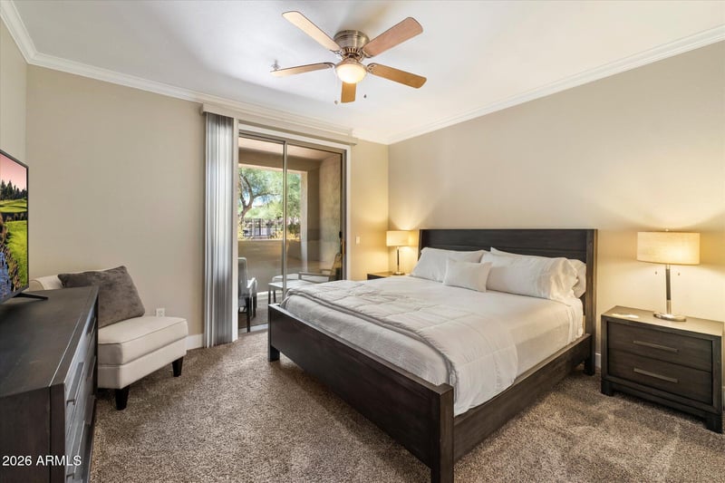 Listing details for 19777 76th St #1229, Scottsdale, AZ 85255 : This beautifully updated ground-floor, 2-bedroom, 2-bath condo offers convenient single-level living and is located within the desirable Venu at Grayhawk community. The open, airy layout is highlighted by newly installed wood-look tile flooring that runs throughout the home. The bright white kitchen serves as the heart of the space, featuring a tile backsplash, stainless steel appliances, and an extended counter that provides convenient seating. The adjacent dining and living areas connect effortlessly, creating a comfortable setting for both everyday living and entertaining. A fireplace adds warmth and charm, and the TV mounted above it will convey with the sale. The HVAC system was replaced in 2022. The spacious primary bedroom includes direct access to a private covered patio. The ensuite bathroom showcases an elegant white and gray tile walk-in shower, providing a spa-like feel. The home includes a 1-car garage plus an additional reserved parking space. Life at Venu at Grayhawk offers a true resort-style experience with access to a luxury clubhouse, large community pools and spas, a fully equipped fitness center, a gourmet chef's kitchen, a private movie theater, and a spa. The location is equally impressive, just minutes from shopping, dining, golf courses, outdoor recreation, major highways, and nearby medical facilities.
