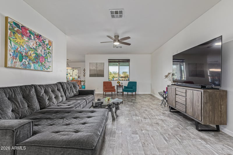 Listing details for 19822 Colter St, Litchfield Park, AZ 85340 : Experience the allure of this beautiful custom home with POOL & GORGEOUS MOUNTAIN VIEWS on an almost 1-acre lot! The property features an RV gate and spacious 2-car car + RV garage (with additional loft storage, workshop area and its own HALF BATH)! Paver driveway for added curb appeal. The inviting interior showcases a welcoming foyer, bountiful natural light, wood-look floors in common areas/primary, and soft carpet in secondary bedrooms. Designed for everyday living, the seamlessly flowing open layout is sure to impress! The impeccable kitchen boasts SS appliances, granite counters recessed & pendant lights, a walk-in pantry, ample wood cabinetry, and an island w/breakfast bar. Primary suite has private exit to the backyard, spa-like ensuite with dual vessel sinks, walk-in closet and walk in shower. You'll love the large, entertainer's backyard! Featuring a paver-covered patio, artificial turf, a storage shed, a fire pit, and a sparkling pool for year-round enjoyment. Plus, BREATHTAKING MOUNTAIN VIEWS create a stunning natural backdrop! Bring your toys, trucks, and RVs; there's room for everything here. Zoned for horse privileges.