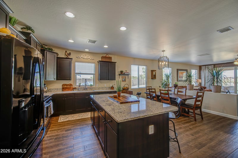 Listing details for 19887 Herbert Ave, Maricopa, AZ 85138 : ABSOLUTELY STUNNING Single-Story Home That Will Be The Standout On Your Tour. This Model-Sharp 3 Bedroom + Den Home Features Modern Tile Flooring, Brand New Carpet In All The Right Places, Fresh Designer Interior Paint, Newer Ceiling Fans & Stylish Upgrades Throughout. The Spacious Den/Flex Room (No Closet Or Doors) Is Perfect For A Home Office, Media Room Or Kids Playroom. The Chef's Kitchen Opens Seamlessly To The Living Room, Perfect For Entertaining And Offers Abundant Cabinetry, Tons Of Counter Space, A Large Island With Breakfast Seating, Gas Stainless Steel Oven And Built-In Microwave. Plus A Grand Primary Suite & Bathroom Fit For Any King & Queen. Step Outside To A Massive Clean-Slate Backyard With No Homes Behind For Added Privacy Plus A Desirable RV Gate. Beautiful DR Horton Home