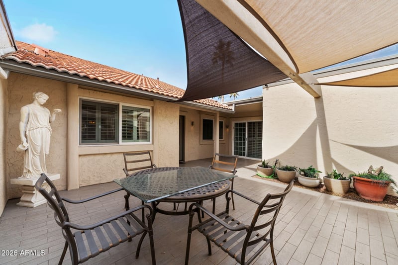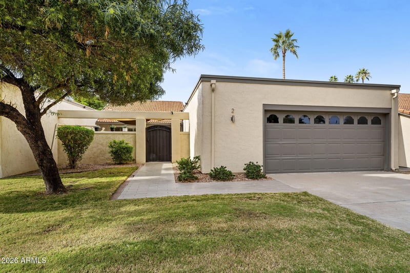 Listing details for 2 Leisure World --, Mesa, AZ 85206 : This is an awesome patio home in Leisure World. The home has a wonderful, large, private front courtyard, and a large covered back patio with a private, park like view. The home has been beautifully updated throughout with a reconfigured kitchen, and all the conveniences you expect. The living room is large and opens out to the back patio. There are three bedrooms and a large craft room/office. Both bathrooms have been updated and the primary bedroom has a wonderful walk in closet with built ins. You will love the huge garage. All this in the Premiere Active Adult Community of Leisure World with 36 holes of private golf, new tennis complex, pickle ball, swimming pools, library, state of the art fitness center, theater, arts and crafts, billiard room, and much more!!