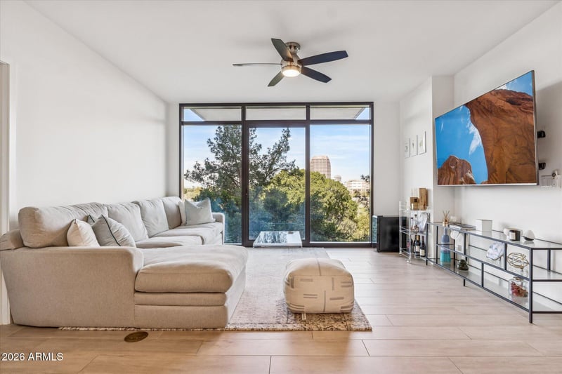 Listing details for 200 Portland St #416, Phoenix, AZ 85003 : This impeccably updated residence in the heart of Downtown Phoenix embodies quiet, understated luxury. From the moment you step inside, floor-to-ceiling windows frame a breathtaking panorama: the meticulously manicured Japanese Friendship Garden directly below, the sweeping green expanse of Hance Park just beyond, and the shimmering Uptown skyline rising elegantly in the distance. Morning light and evening glow transform the view into a living work of art. The thoughtfully designed two-bedroom layout offers both comfort and sophistication, enhanced by high-end finishes that make everyday living feel indulgent. It's a space meant for gathering; perfect for hosting friends and family before stepping out to enjoy the vibrant dining, arts, and cultural offerings of Downtown Phoenix. Two premium garage spaces on the same floor, complete with an EV charging hookup, add convenience and exclusivity. Residents also enjoy access to a beautifully appointed rooftop lounge and outdoor kitchen, ideal for elevated entertaining, while the serene ground-level pool provides a refreshing retreat on warm desert days. This is refined urban living: luxurious, effortless, and surrounded by beauty.